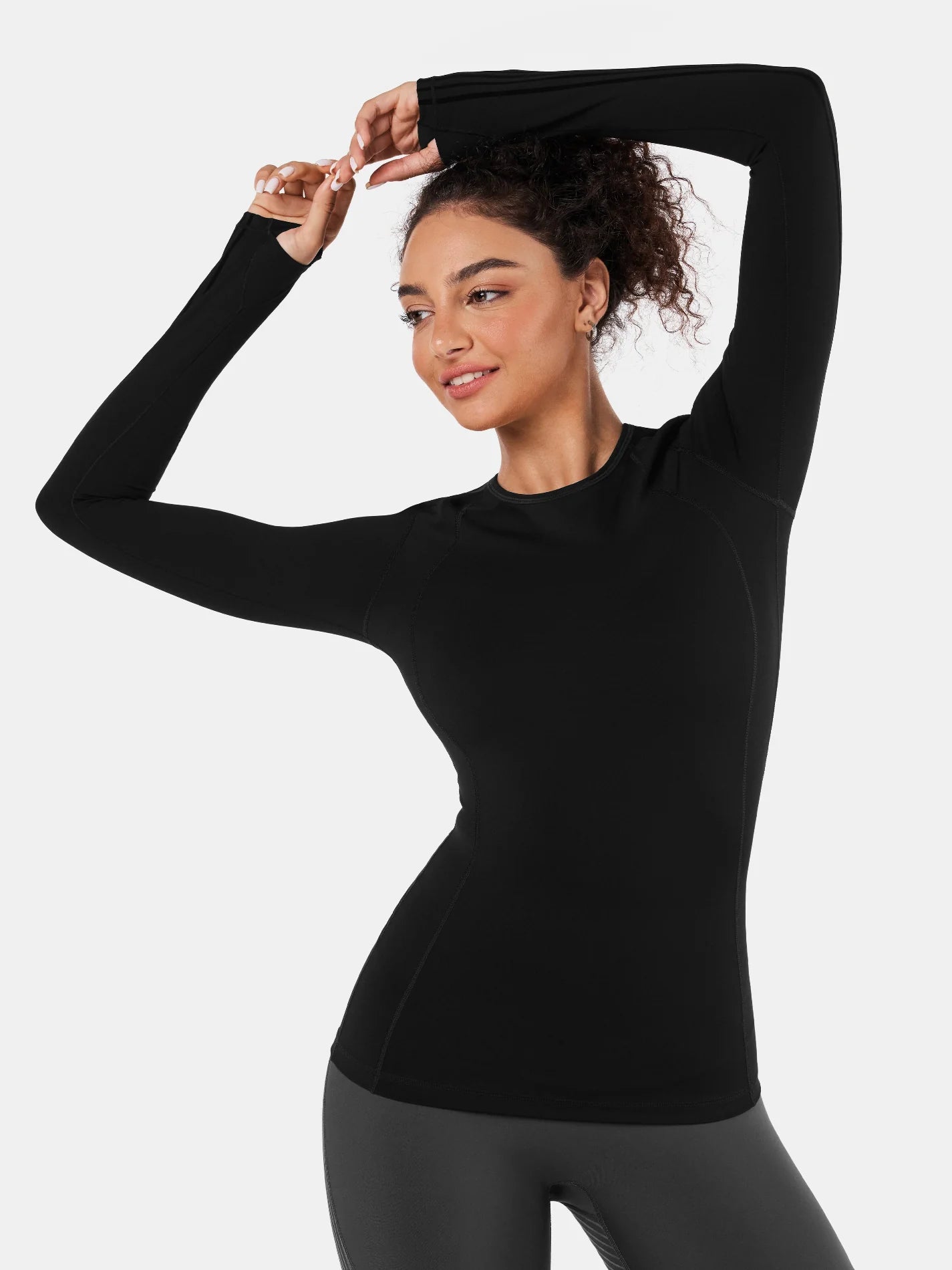 En marche, en squat ou en fente, le haut long reste en place, ne remonte pas et garde son maintien, pour que vous vous concentriez sur l’effort, pas sur le tissu.
